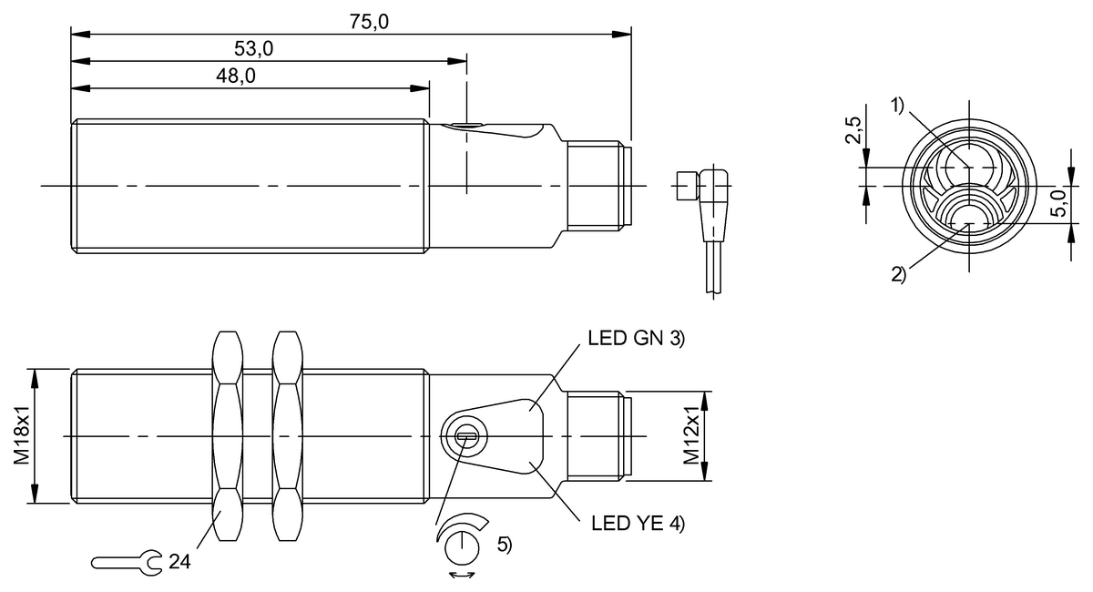 • Меньшее расстояние обнаружения по сравнению с ретрорефлективными и сквозными датчиками