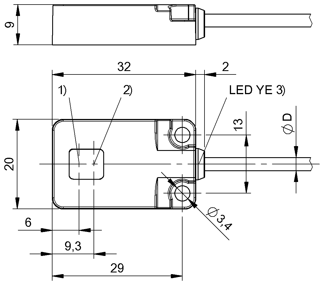 • Меньшее расстояние обнаружения по сравнению с ретрорефлективными и сквозными датчиками