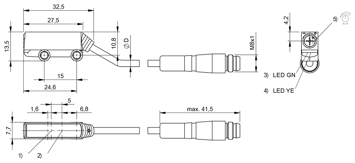 • Меньшее расстояние обнаружения по сравнению с ретрорефлективными и сквозными датчиками