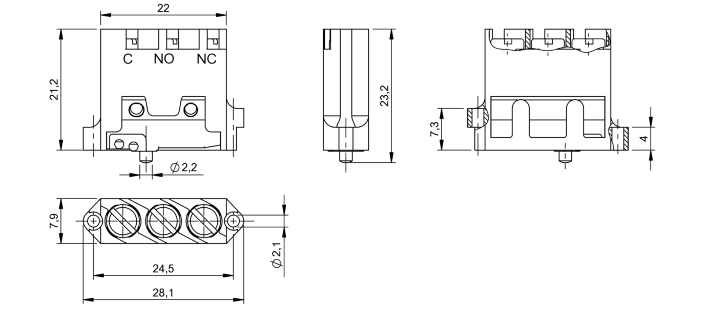 Механические однопозиционные концевые выключатели без принудительного размыкания реализуют процесс переключения через телескопический плунжер, который соединяет переключающий элемент с герметичной камерой. Чтобы обеспечить длительный срок службы оборудования, нужно тщательно подобрать форму плунжера в соответствии с используемыми кулачками.